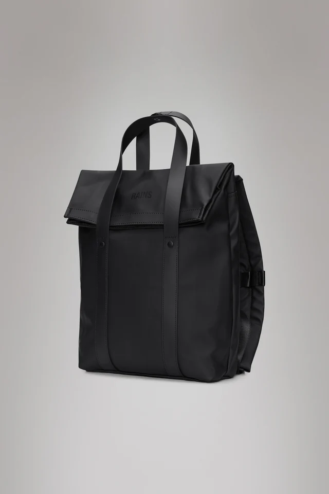 2 Way Tote Backpack Mini está confeccionada con el característico tejido de PU de Rains, diseñado para garantizar una gran resistencia, durabilidad y un tacto agradable.