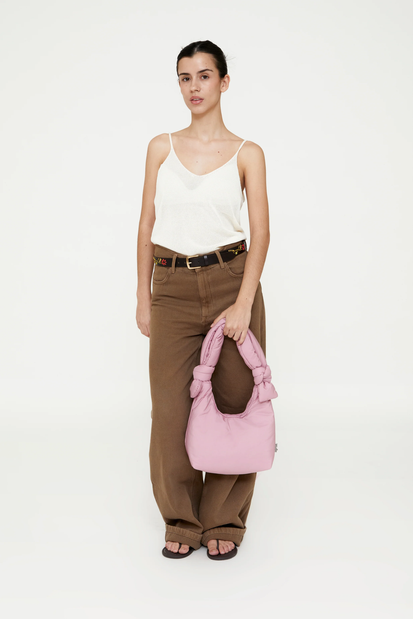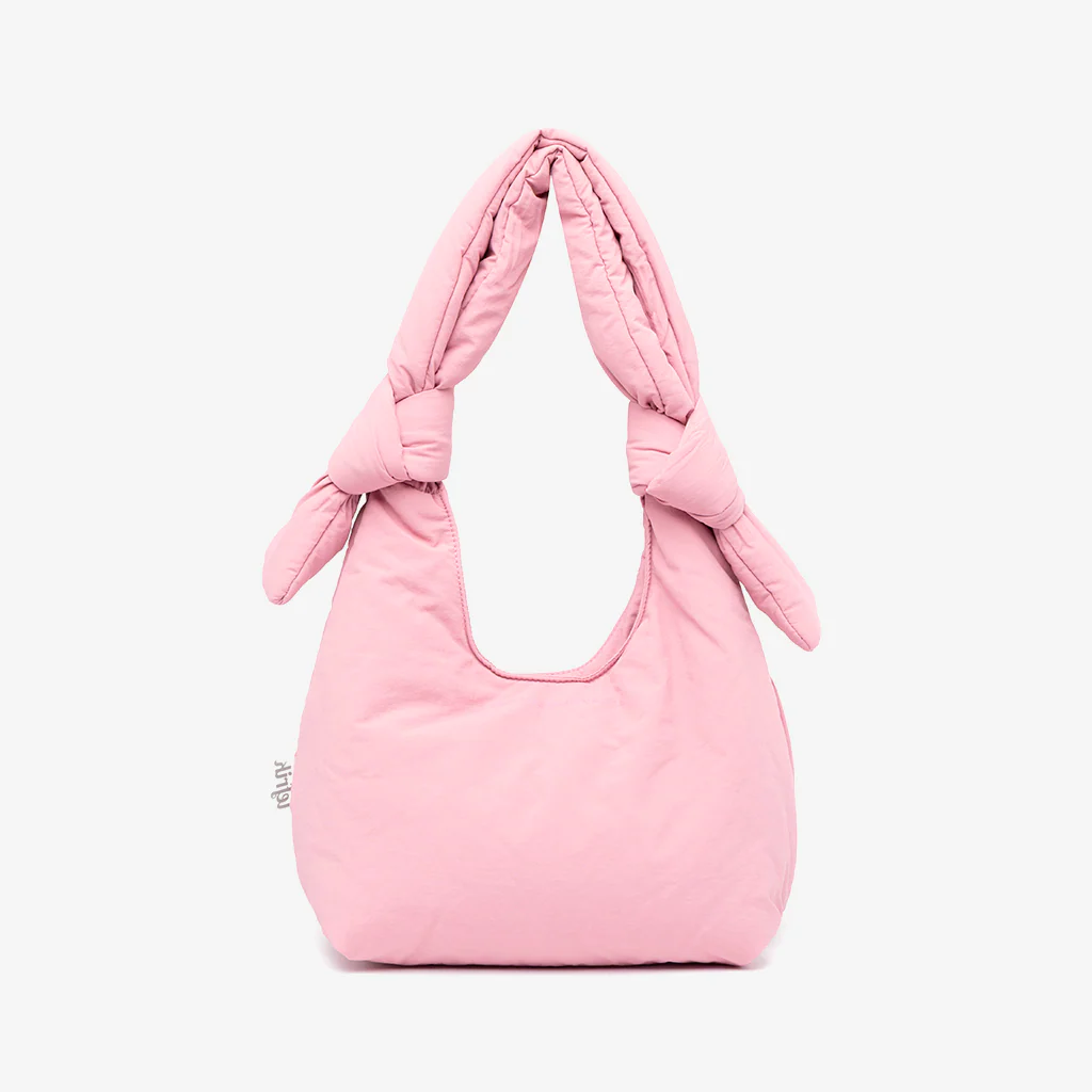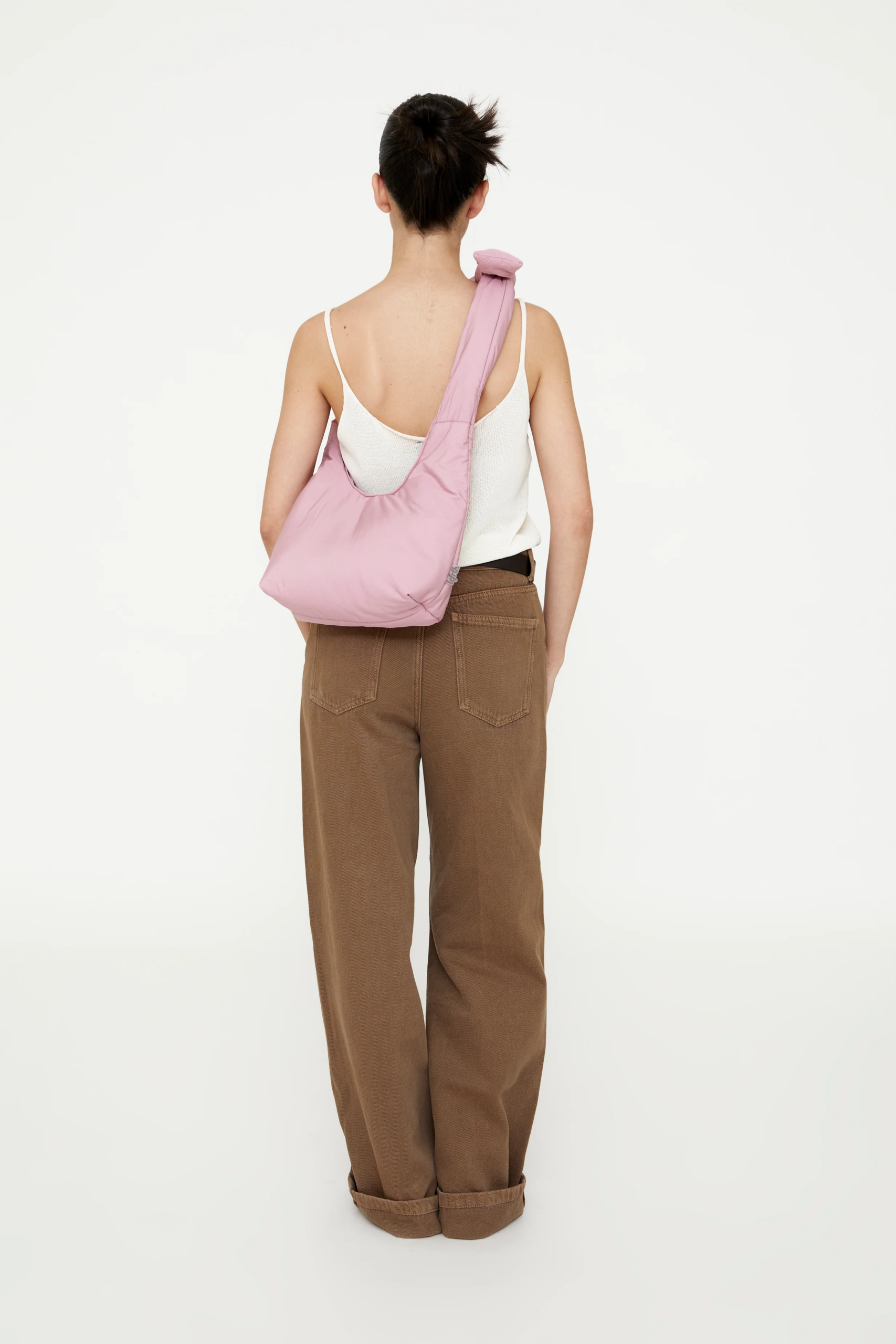 Versión Mini del bolso acolchado Biwa. Diseñado para ser utilizado tanto como bandolera como al hombro, gracias a sus lazos corredizos ajustables. Su tejido 100% reciclado y acolchado suave lo hacen muy ligero y agradable al tacto. Compartimento principal de gran capacidad y bolsillo interior con cremallera. Perfecto para el día o para la noche.