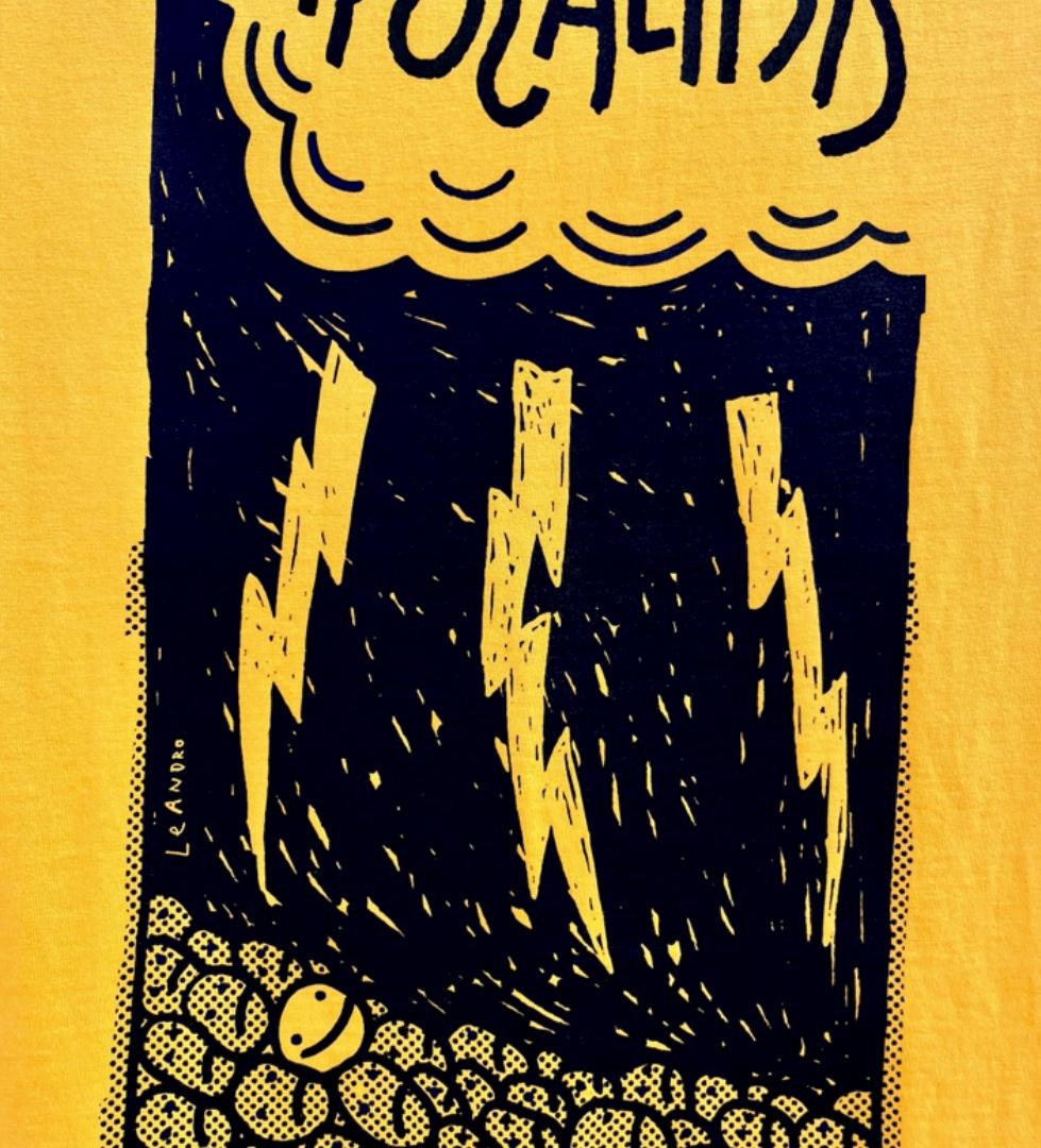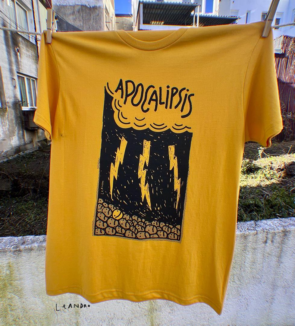 Serigrafía NEGRA sobre camiseta amarillo mostaza 100% algodón.