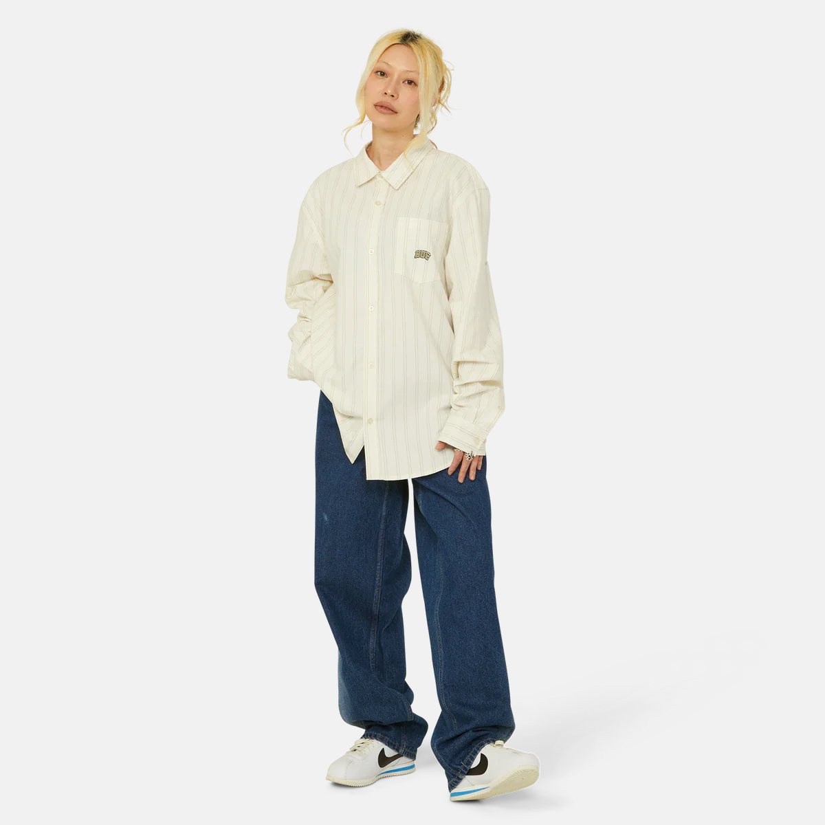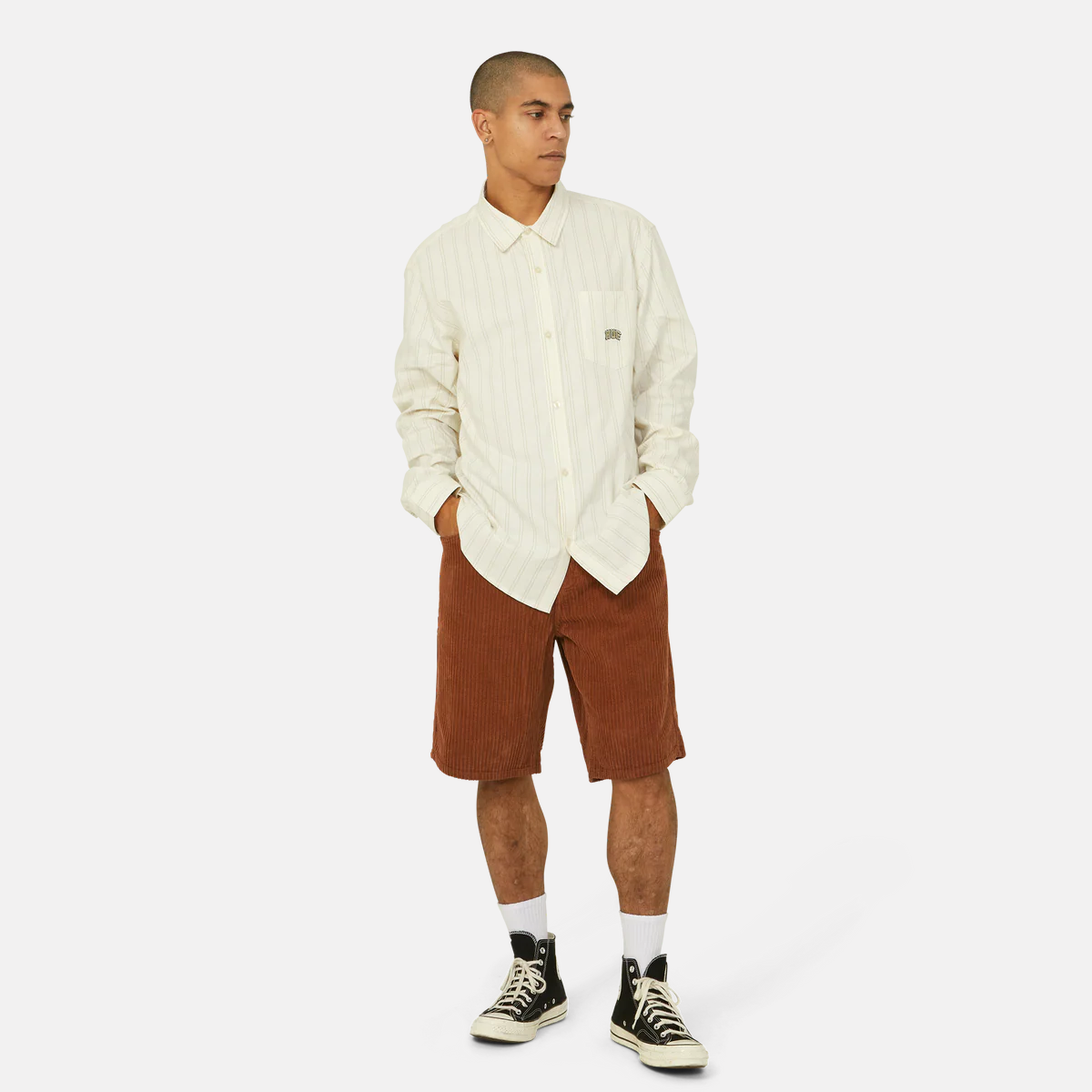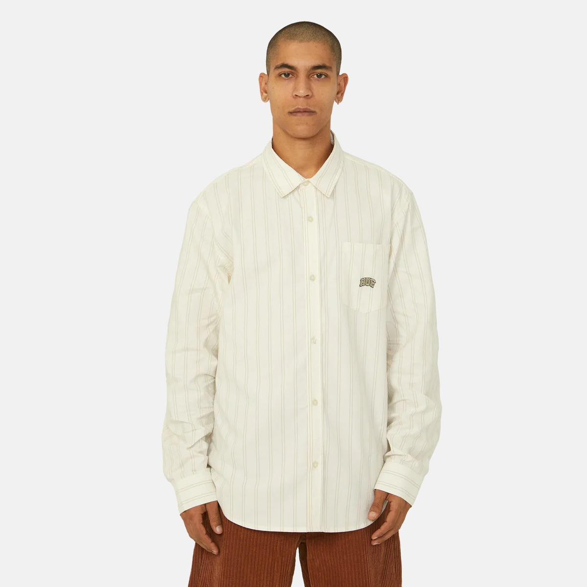 Camisa Oxford de manga larga a rayas, bolsillo en el pecho con el logotipo de HUF bordado y un corte básico. Botones delanteros con la marca. Etiqueta tejida de HUF en el interior del cuello.