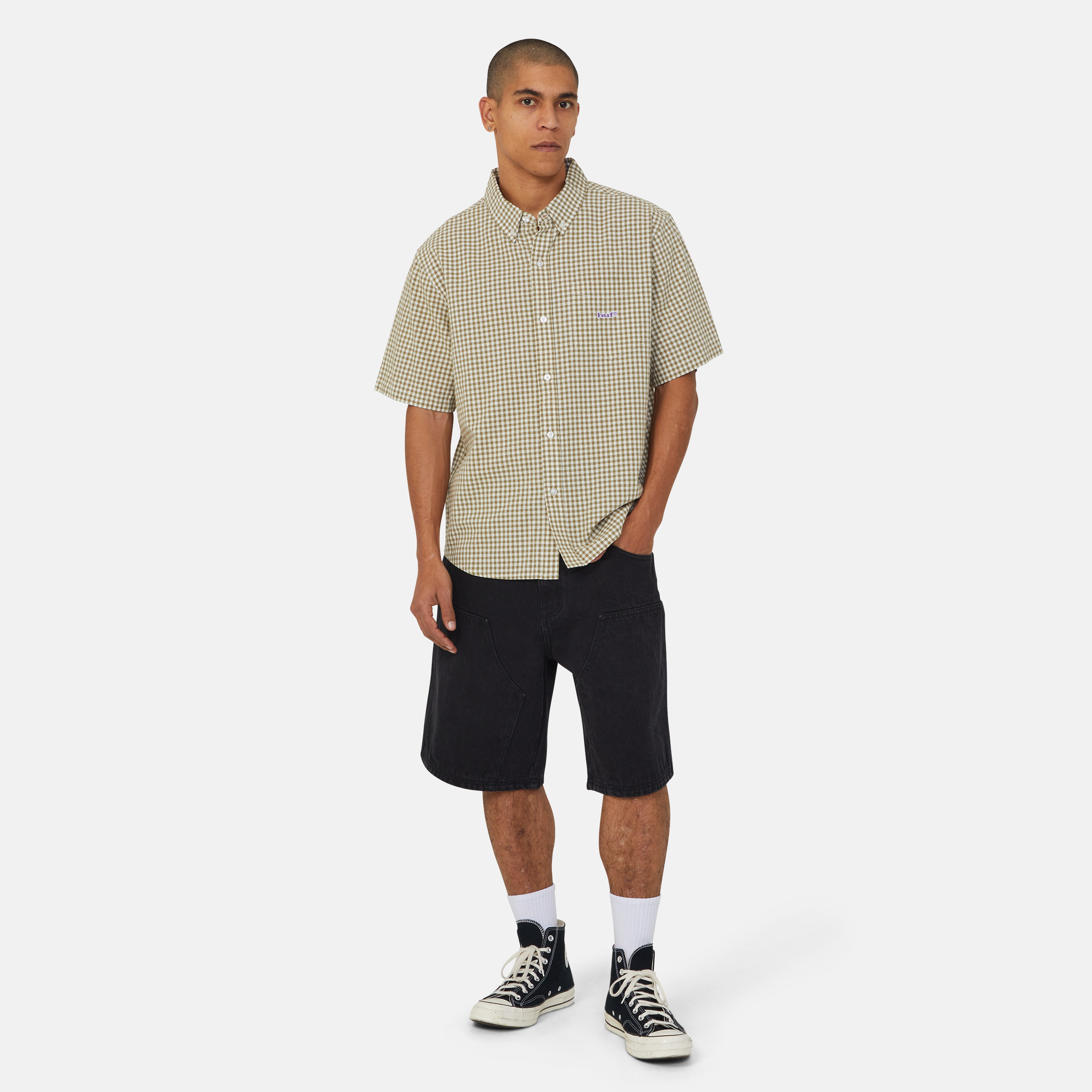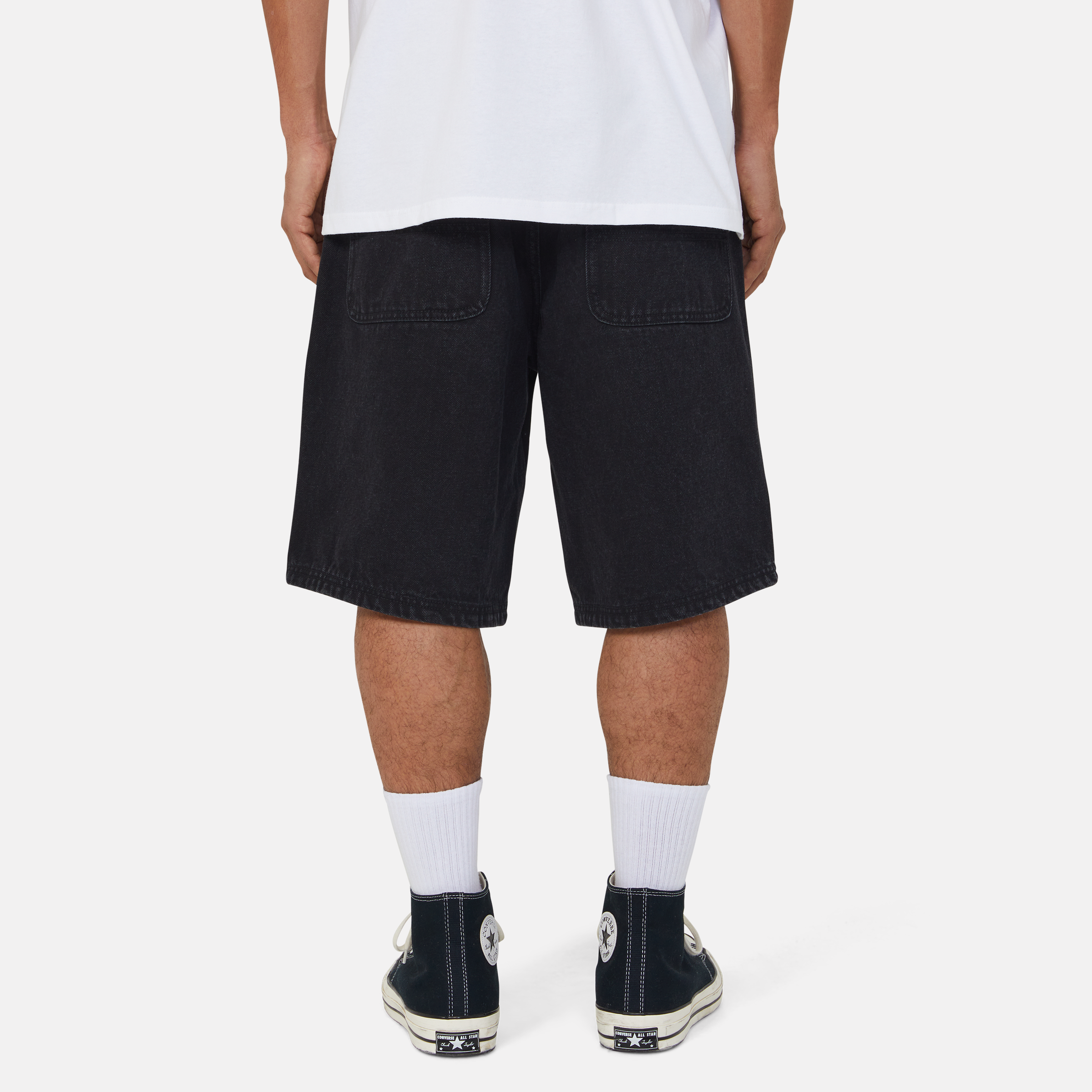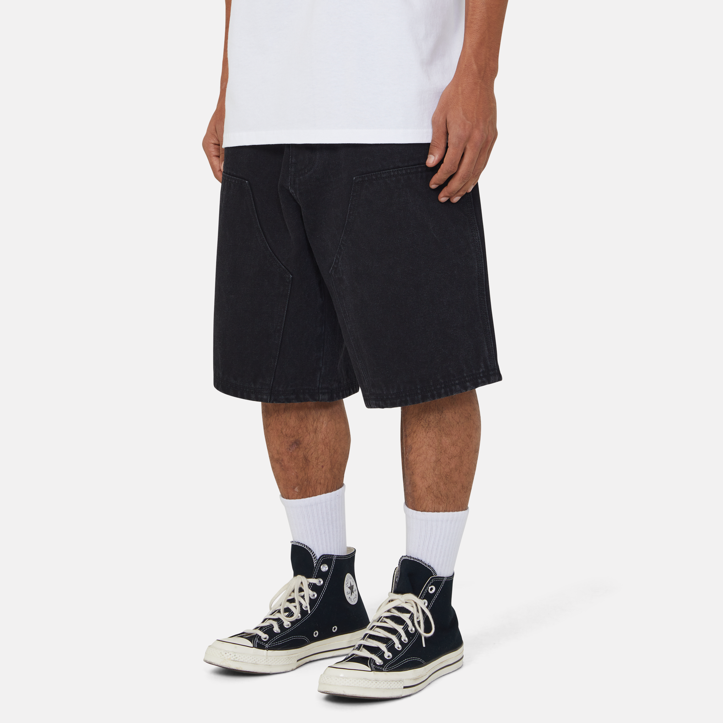 100% Algodón (13.5OZ) Pantalón corto vaquero double knee. Corte holgado. 5 bolsillos con logo bordado en el bolsillo pequeño. Parche de cuero en la parte posterior.