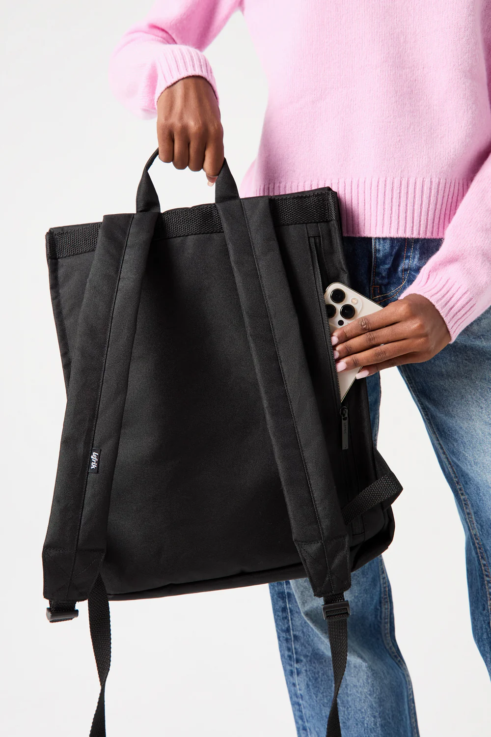 Su tejido OXFORD RPET lo hace ligera, resistente al agua y vegana. Lavar en frío. Secar al aire.