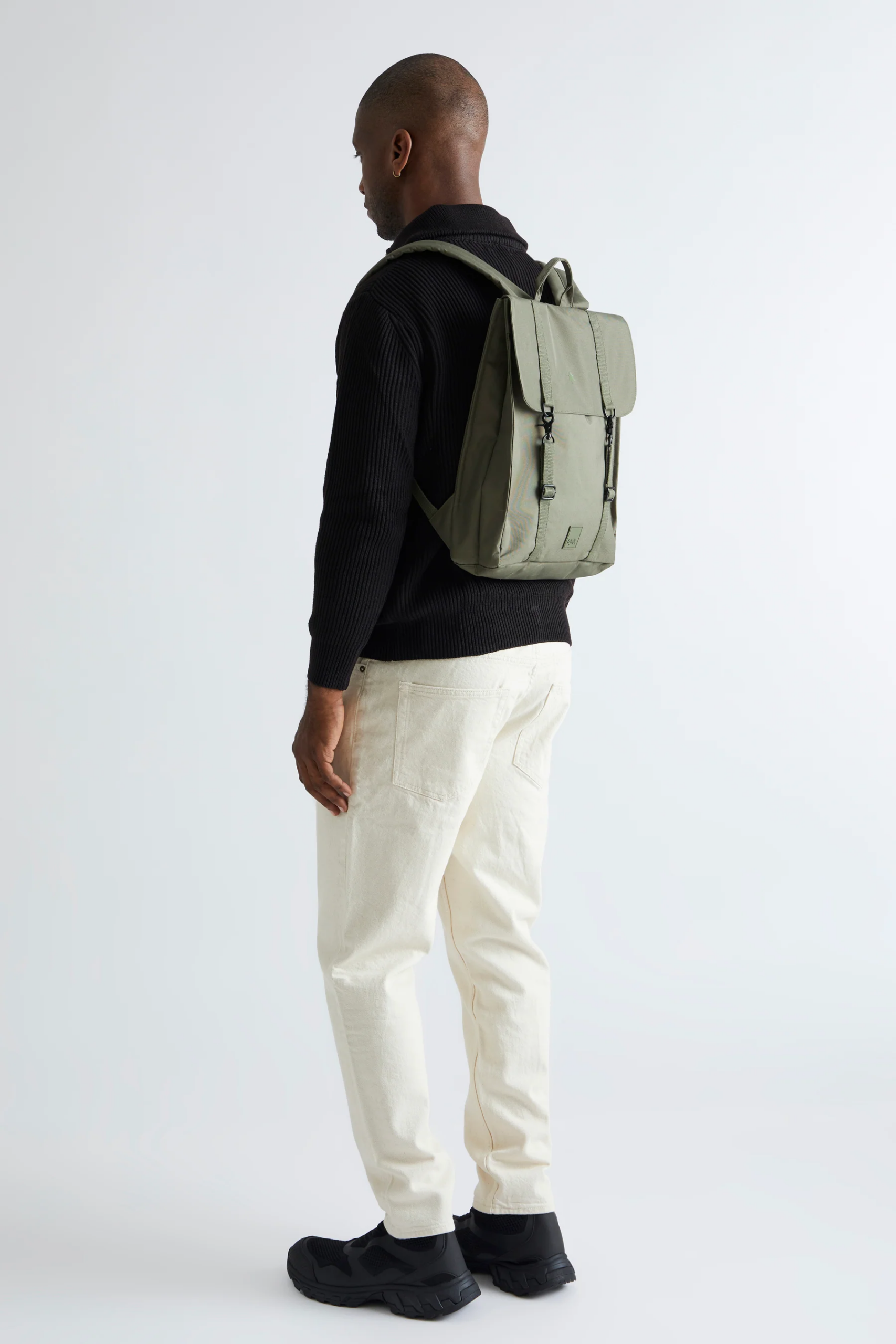 Su tejido OXFORD RPET lo hace ligera, resistente al agua y vegana. Lavar en frío. Secar al aire.