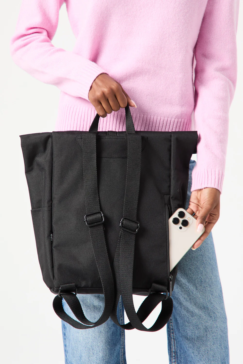 Su tejido OXFORD RPET la hace ligera, resistente al agua y vegana. Lavar en frío. Secar al aire.