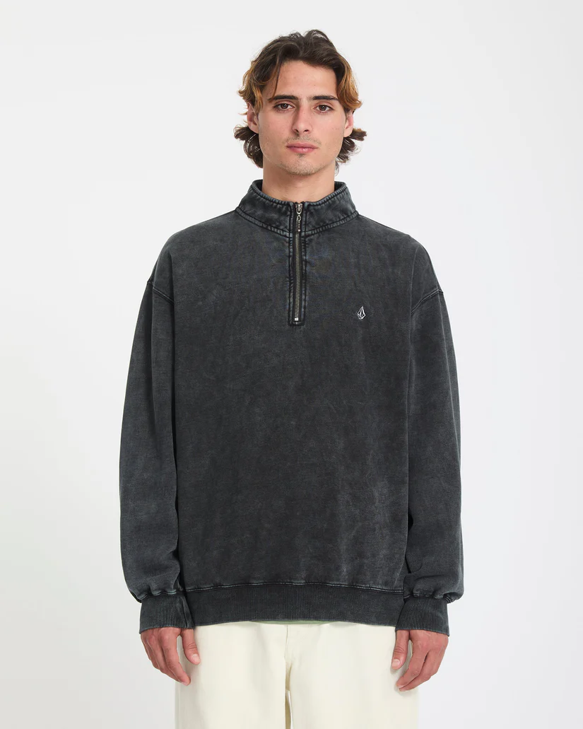 SINGLE STONE QUARTER ZIP–LIGHT ACID BLACK