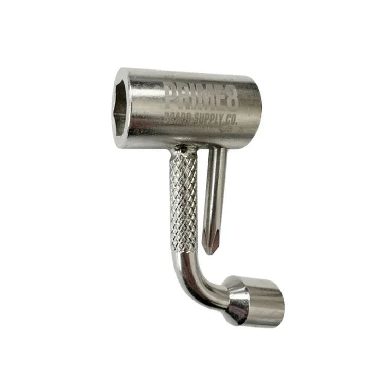 Casquillo de 3/8″ para tornillosLlave de vaso de 9/16″ para ajuste del pivote de direcciónLlave de vaso de 1/2″ para ruedasLima de precisión para cinta antideslizanteLlave Allen desmontable